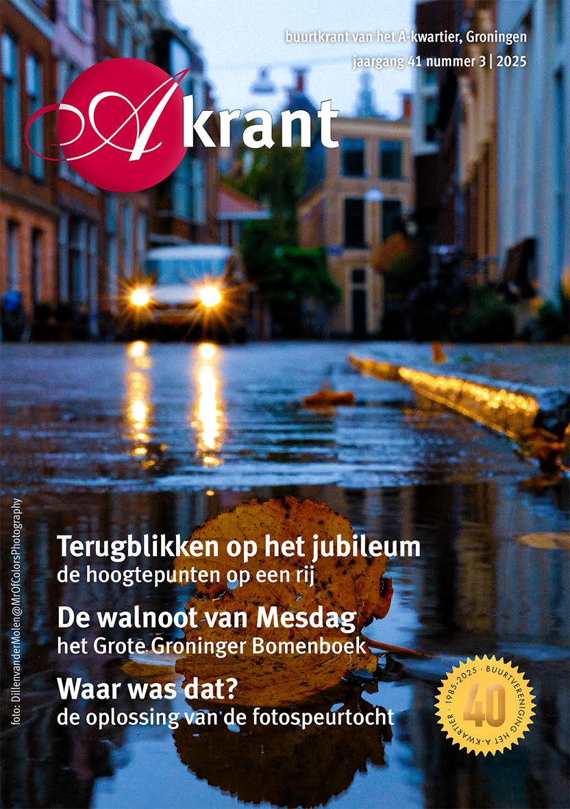 Wij zijn trots op onze mooie buurt, het A-Kwartier wordt al duizend jaar bewoond. Je vindt er alles: de oude haven van Groningen, musea en statige grachtenpanden. Kroon op het middeleeuwse patroon van straten en steegjes is de elegante A-Kerktoren.