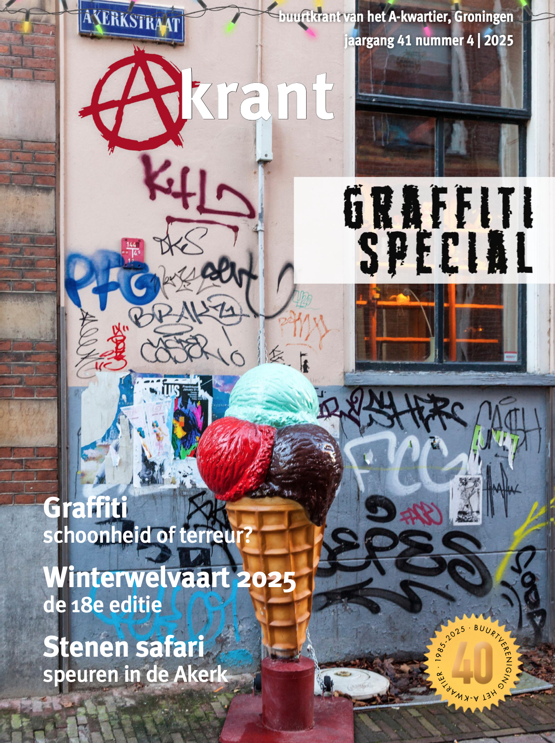 Wij zijn trots op onze mooie buurt, het A-Kwartier wordt al duizend jaar bewoond. Je vindt er alles: de oude haven van Groningen, musea en statige grachtenpanden. Kroon op het middeleeuwse patroon van straten en steegjes is de elegante A-Kerktoren.