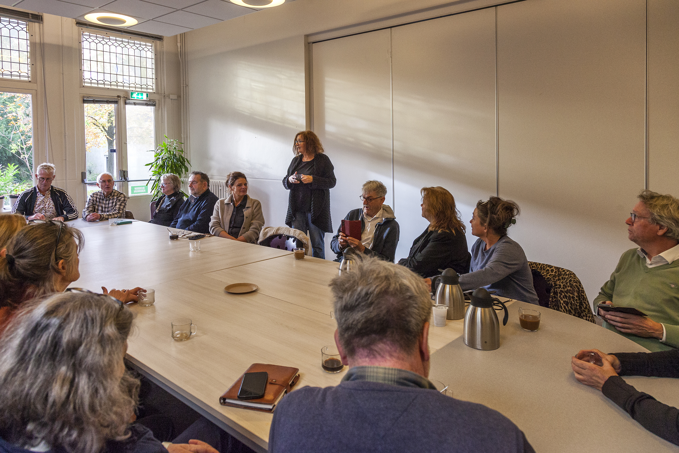 Onze eerste buurtinloop is een feit. En een succes. Bijna 25 personen nemen plaats aan de grote tafel in de Tuinzaal van Humanitas. De onderwerpen WinterWelVaart en WinterGoud worden gepresenteerd door het duo Karlijn Donders en Ina Bakker. Duidelijk, vlotjes en uiterst informatief. De zaal vormt een afspiegeling van de wijk: geïnteresseerde buurtbewoners, het Der Aa-theater, bedrijven en (vertegenwoordigers van) kunstenaars.